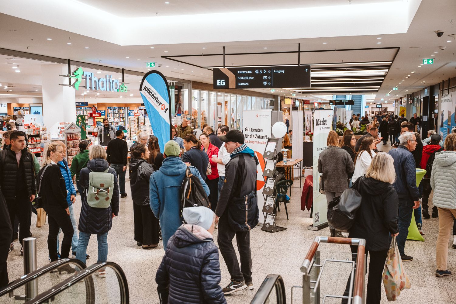 Friedrichshain-Kreuzberg ist zweifellos der innovativste Berliner Bezirk – doch auch in Pankow zeigt sich, wie Wirtschaft, Bildung und junge Talente erfolgreich zusammenfinden können. In diesem Sinn war das Team des Regionale Fachkräfte-Bündnis Friedrichshain-Kreuzberg beim Karriere-Tag im Rathaus-Center Pankow zu Gast. Organisiert wurde die Veranstaltung von der MALI gGmbH unter Leitung von Martha Kauffmann, zugleich Vorsitzende des Unternehmensnetzwerks Pankow. Ihr Team brachte Betriebe, Schüler*innen und Arbeitssuchende in einer offenen Atmosphäre zusammen. Zahlreiche Unternehmen aus der Region stellten Ausbildungs- und Jobangebote vor und kamen mit Jugendlichen und Erwachsenen ins Gespräch. Die Vielfalt der Branchen machte deutlich, wie lebendig und vielseitig der regionale Arbeitsmarkt ist.