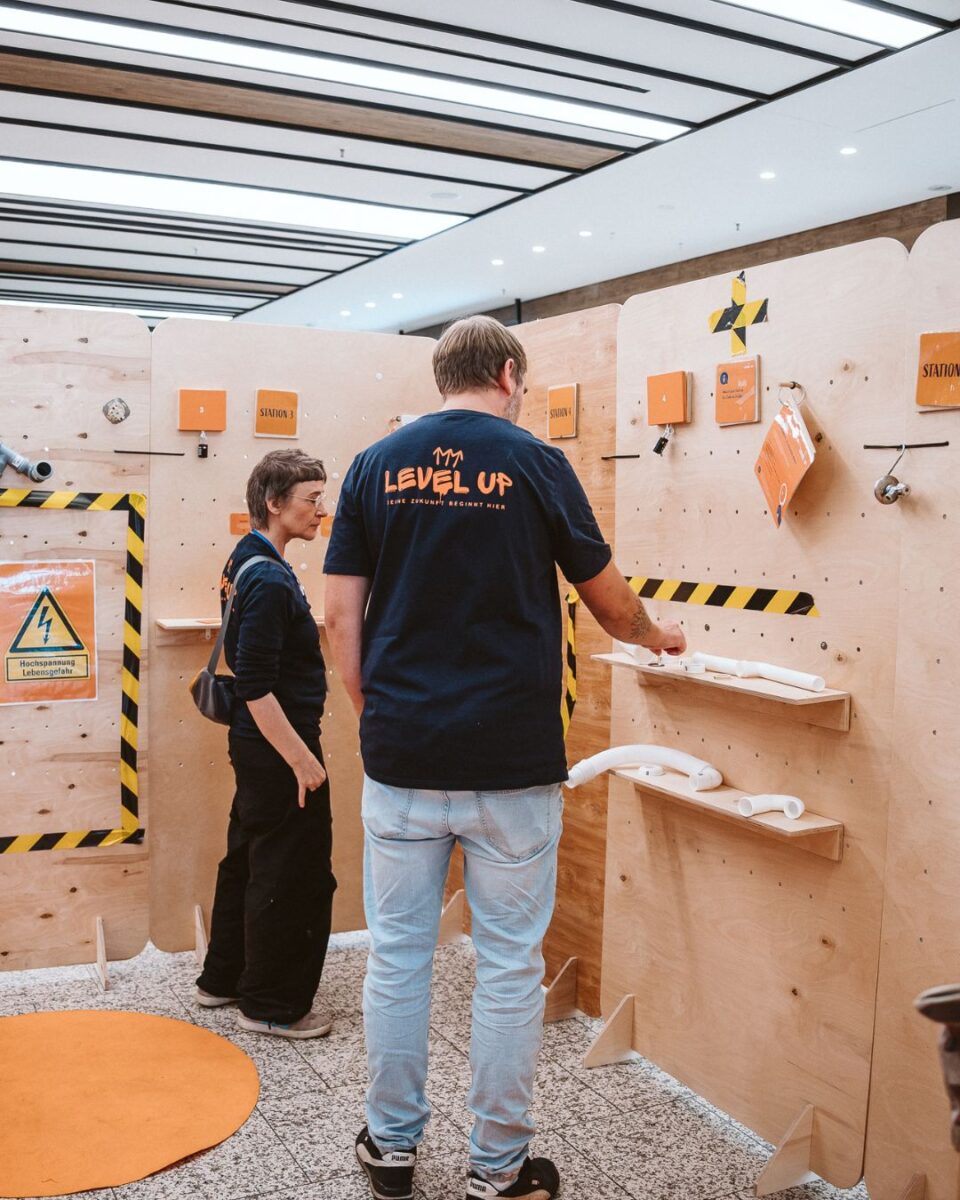 Ein Höhepunkt war der Stand der Frisch & Faust Tiefbau GmbH. Dort trafen wir Helmut Arndt, unseren langjährigen Partner der Ausbildungsoffensive Infrastruktur, und seine Kollegin Deborah Kröger. Beide zeigten, wie persönliche Ansprache und authentische Einblicke Jugendliche für handwerkliche Berufe begeistern können. Gespräche über Ausbildung, duales Studium und berufliche Perspektiven fanden hier auf Augenhöhe statt – direkt und praxisnah.